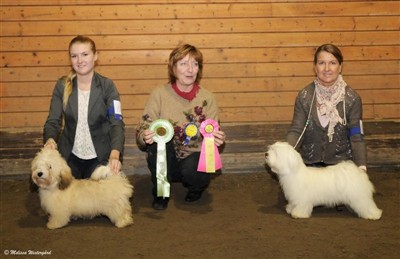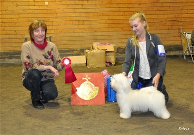 I söndags morse åkte Amanda och jag med Lady till Eskilstuna på valputställning. Vi skulle möta upp Melissa med Iron och Iris samt Sune med matte Maria med familj. 14 valpar deltog. Först ut var Amanda med Iron 4-6 månader hanar. Iron var jätteglad och gav domaren pussar, han vann klassen av två med HP. Sedan skulle jag få äran och visa Sune i klassen 6-9 månader. 3 hanar deltog och Sune blev 2:a med HP. Inte illa för att första gången gå vänster varv. Varje hane som hade vunnit sin klass skulle mötas i final hanvalpar och kors i taget yngst i gänget tog Iron hem segern. Bra jobbat Amanda. Därefter var det Iris och Ladys tur i klassen 6-9 månader. 5 tikvalpar deltog, Iris blev 4:a och Lady vann klassen med HP. Bästa tikvalp blev Lady som mötte Iron i final. Lady säker i stegen blev BIR valp och Iron BIM valp. Lady vann även gruppfinalen men i BIS finalen blev det ingen placering. Tack alla för trevligt sällskap och som stolt uppfödare/ägare åkte jag hem mycket nöjd med dagen. Domare för dagen var Monika Vikner Stafberg.
