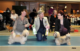 Förra lördagen var jag på inofficiell valputställning i Sollentuna med auktoriserade domare på rasen. Jag hade anmält Lady samt att Iron och Sune skulle också komma.Det blev domarbyte från Hans Almgren till Cindy Pettersson. Först ut var lilla Iron som Melissa visade så fint, han vann 6-9 mån med Hp och sedan slog han alla hanar som fått Hp samt slutade som BIM. Sune kom 3:a i sin klass 9-12 mån med fin kritik samt fint visad av sin matte Maria. Nellie vann sin klass 9-12 mån och slutade som 2:a bästa valp tik. BIR blev Zeldas barnbarn Estelle.